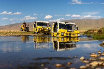 Trabanty objely svět, teď plují žáby! Cestovatel Dan Přibáň se po šesti letech vrací do kin – tentokrát v obojživelném vozidle LuAZ 967 přezdívaném žlutá žába, které nejen jede, ale i plave! Spolu s ním vyráží na divokou cestu česko-slovenská parta bláznivých dobrodruhů včetně nezničitelného Marka Slobodníka na plovoucí motocyklové tříkolce. Cíl? 18 000 kilometrů z Prahy až do Ulánbátaru. Prostředky? Ojeté, nebezpečné a legrační stroje. Výzvy? Nástrahy exotických zemí, bizarní režimy, mizející řeky, kvetoucí pouště i nekonečné pláně, kde nejsou cesty – jen směry. A Mongolsko – země modrého nebe. Nejméně osídlená země světa. Země, která láme srdce i plní sny. Ve finále, pod dunami pouště Gobi, dojatí chlapi zjišťují, že to fakt stálo za to a že zázraky se dějí… Ale někdy úplně jinak, než čekali.